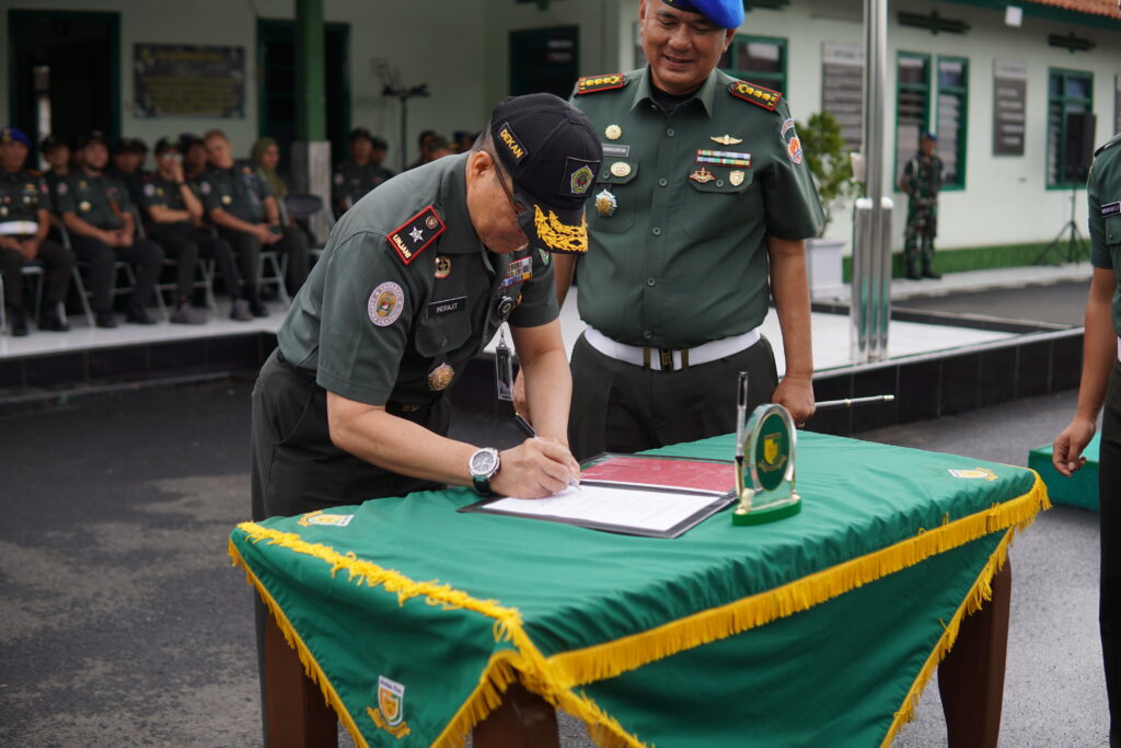 Penandatanganan berita acara serah terima yang mengukuhkan selesainya masa penggemblengan fisik dan mental para peserta.