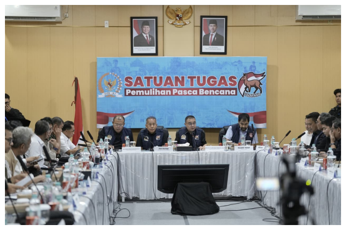 Rapat ini digelar untuk memperkuat fokus pemulihan pascabencana di Indonesia dengan melibatkan seluruh kementerian/lembaga (K/L), BUMN, dan pemerintah daerah terdampak bencana.