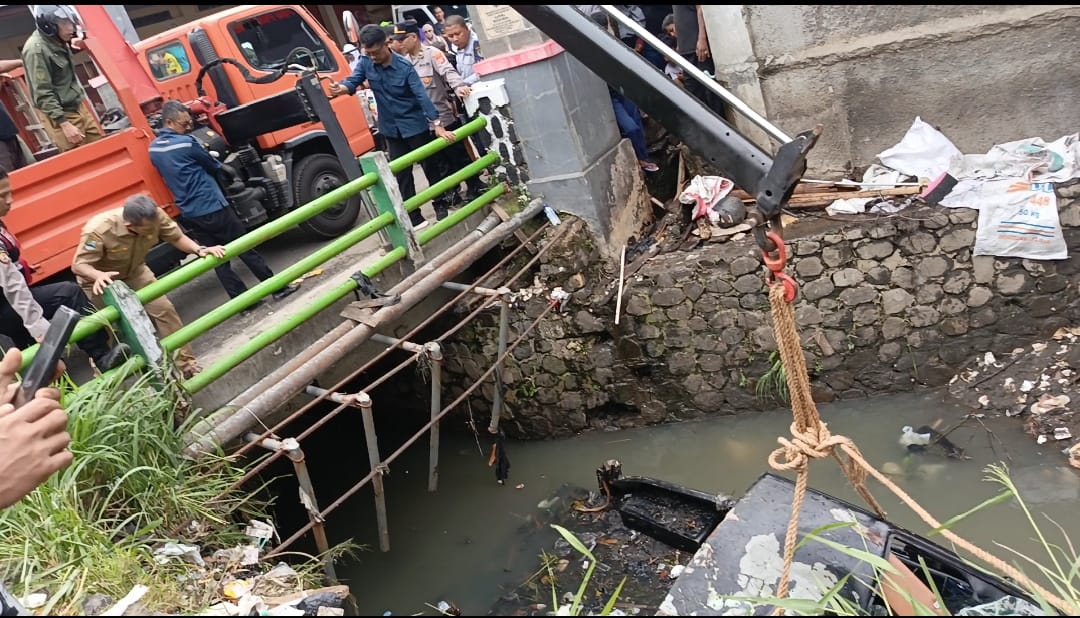 Evakuasi mobil Kijang pada Rabu (3/12/2025) sempat mengalami kesulitan. Dua mobil derek dari Dishub Kab. Bandung dan BPBD Provinsi Jabar mesti berjibaku untuk mengeluarkan mobil dari dalam sungai.