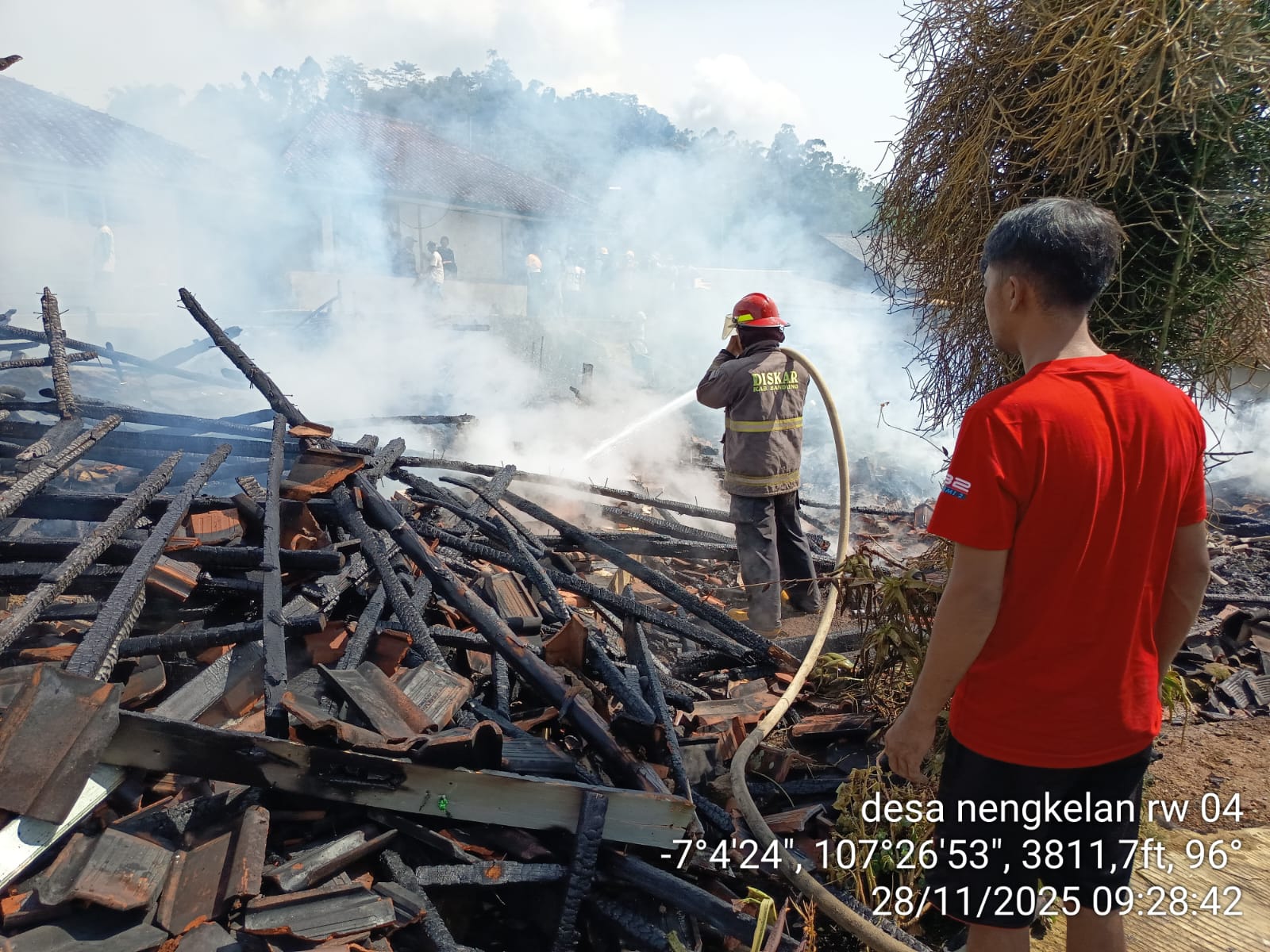 TERASJABAR.ID – Kebakan hebat terjadi di Desa Nengkelan, Kec. Ciwidey, Kab. Bandung, Jumat (28/11/2025) sekitar pukul 10.00 WIB. Dalam peristiwa tersebut, 2 rumah panggung milik warga tak mampu ini hancur-lebur jadi abu diamuk si jago merah.