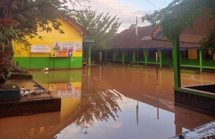 TERASJABAR.ID – Luapan Sungai Cikeruh dan Catarik di Rancaekek, Kab. Bandung merendam ratusan rumah di sejumlah desa. Bahkan ada bangunan sekolah turut terenam. Bangunan tersebut adalah SDN 7 Rancaekek di Jalan Pahlawan Toha No. 83, Desa Rancaekek Kulon, Kec. Rancaekek, yang terendam banjir sejak Sabtu (11/4/2026) sore. Banjir pun masih merendam bangunan, serta lumpur memenuhi halaman dan ruang sekolah, Minggu (12/4/2026).
