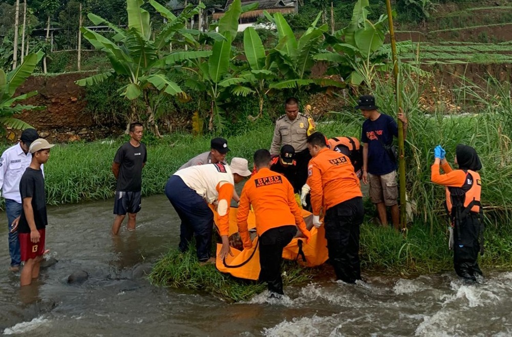 TERASJABAR.ID – Hari ke-3 pencarian Pepen Suherman (57) yang terbawa arus Sungai Cihideung, Kec. Pangalengan, Kab. Bandung, berakhir, Rabu (29/4/2026), usai jasadnya ditemukan.