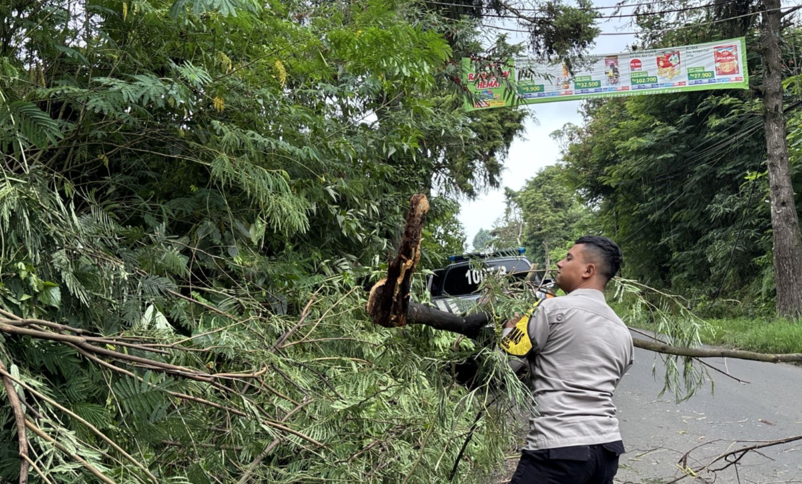 “Setelah menerima laporan, anggota kami langsung turun ke lokasi untuk melaksanakan cek TKP dan membersihkan material pohon tumbang yang menghalangi jalan, ” ujarnya.