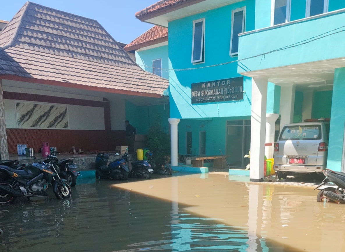 “Ketingggian air antara 30 cm dan 40 cm hingga 100. Termasuk Kantor Desa Sukamanah turut terendam.