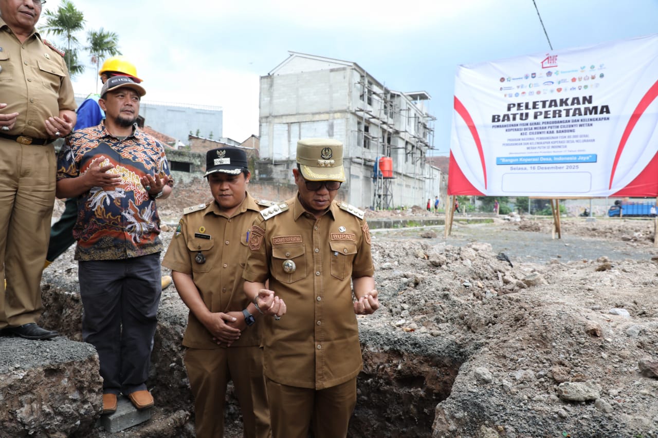 TERASJABAR.ID – Bupati Bandung H. Dadang Supriatna meletakkan batu pertama pembangunan fisik gudang dan gerai Koperasi Desa Merah Putih (KDMP) Cileunyi Wetan di eks Terminal Cileunyi, Kec. Cileunyi Kab. Bandung, Selasa (16/12/2025).