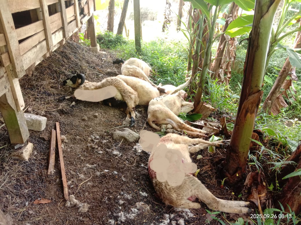 Toto Sunarto Ketua RW 06 menuturkan, kambing peliharaannya berlokasi di Blok Sawah Peundeuy. Ketika akan memberi pakan di kandang dirinya merasa terkejut, 3 ekor kambingnya sudah terbujur kaku dengan luka di bagian leher. Sementara di kandang sebelahnya 3 ekor kambing milik Dudu juga mati dengan luka dibagian tubuhnya.