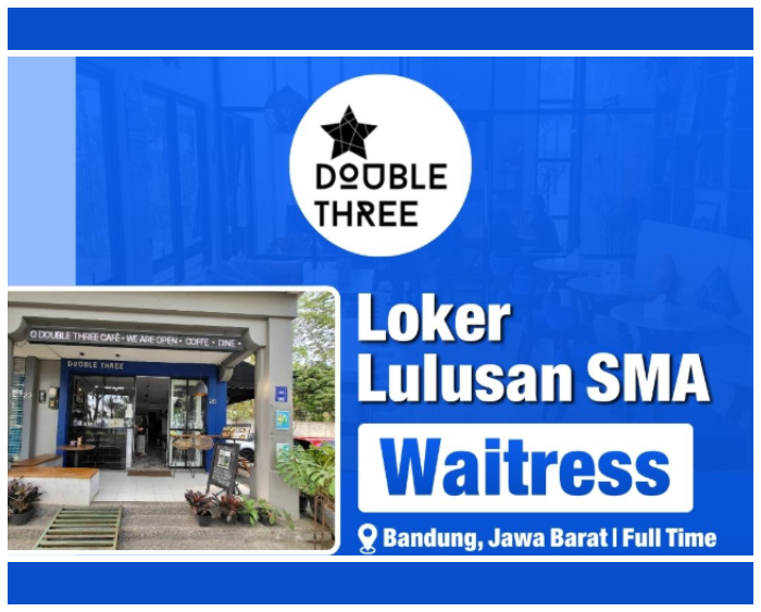 Pada saat ini, Double Three Cafe Bandung sedang membuka lowongan kerja (loker) yang terbuka bagi tamatan SMA dan SMK.