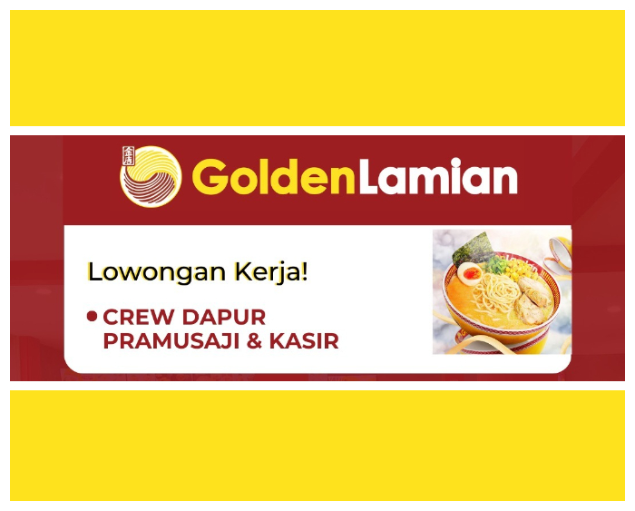 Pada saat ini, Golden Lamian Bandung sedang membuka lowongan kerja (loker) yang terbuka bagi lulusan SMP.