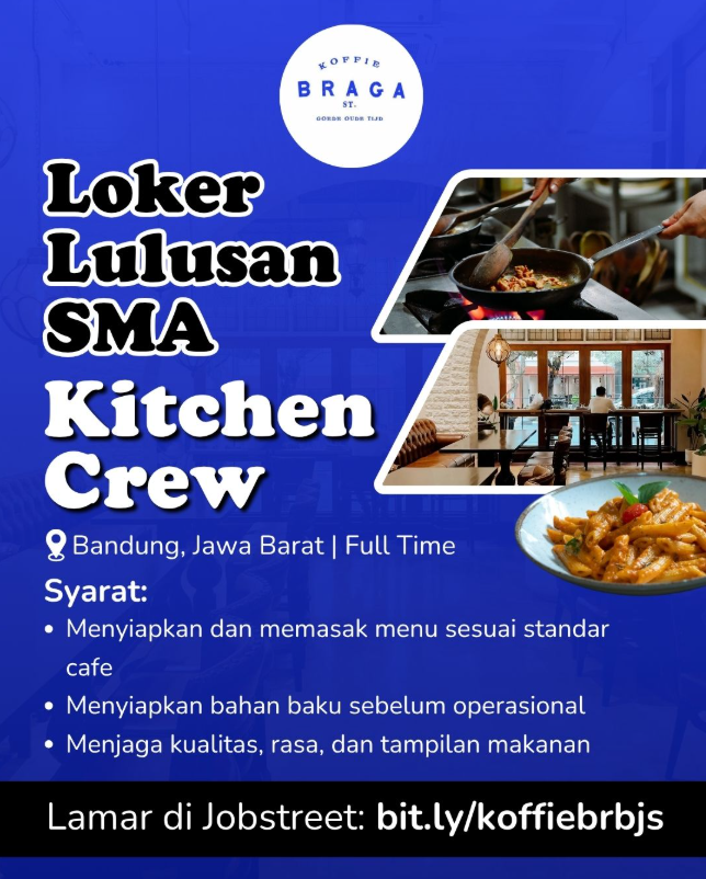 Dengan posisi sebagai Kitchen Crew, loker Koffie Braga Bandung menjadi peluang emas.