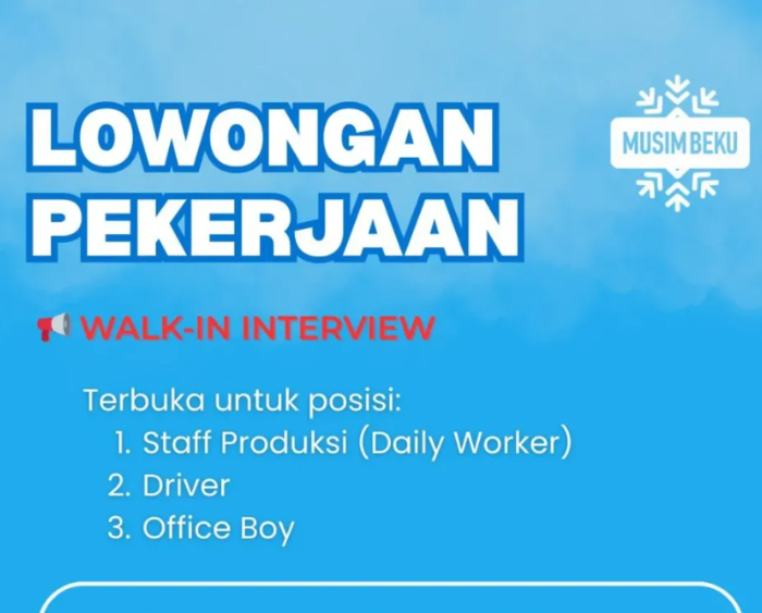 Walk In Interview! Musim Beku Bandung Buka Loker 3 Posisi Buat Lulusan SMA dan SMK