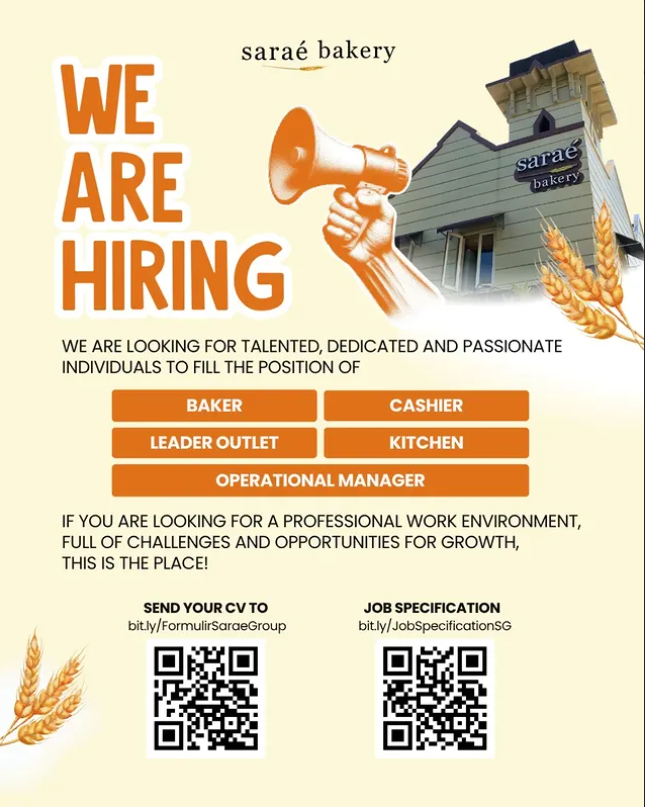 - Minimal SMA/SMK semua jurusan. Lebih disukai D3/S1 Manajemen, Hospitality, atau bidang terkait F&B/Retail.