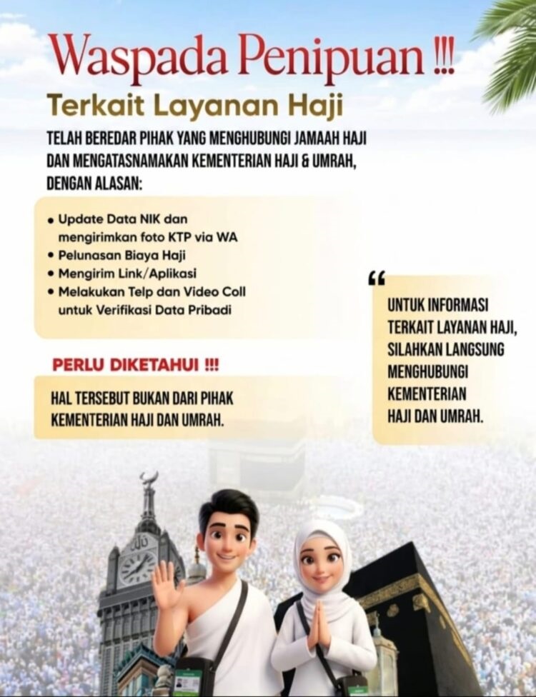 TERASJABAR.ID.-Praktik Penipuan Layanan Haji yang mengatasnamakan Layanan haji dan instansi pemerintah disinyalir akhir-akhir ini semakin marak. Untuk itu para calon Jamaah Haji hendaknya berhati-hati dan meningkatkan kewaspadaan. Hal ini disampaikan oleh Kepala Diskominfo Kuningan H Ucu Suryana, dalam siaran Pers nya Rabu (15/04/2026).