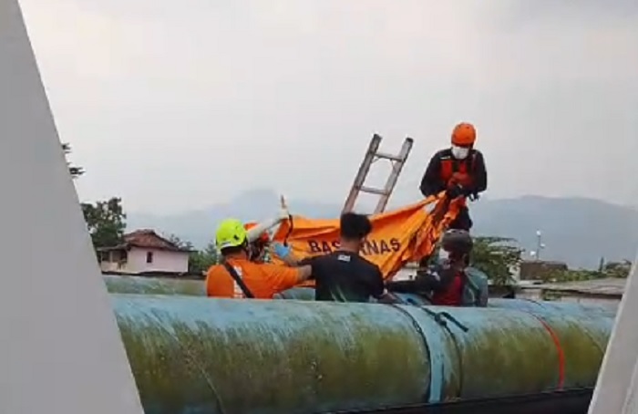 Jasad yang mengenakan kaos hitam yang ditemukan warga dan ditindaklanjuti tim SAR gabungan ini diduga Enda Hermawan (27) yang menceburkan diri ke Sungai Citarum Baleendah, 8 hari lalu, tepatnya, Kamis (9/4/2026).