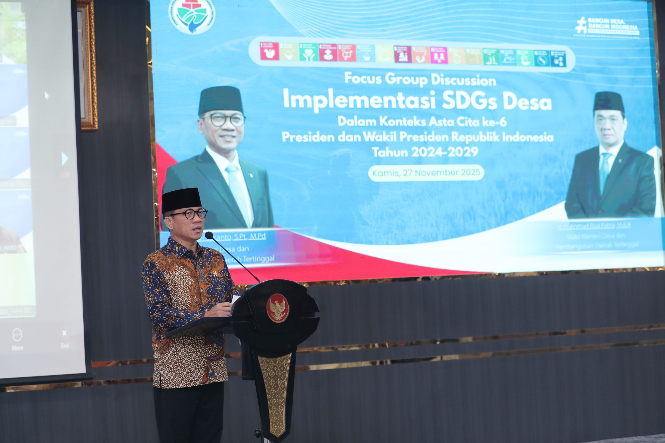 “Oleh karena itu Focus Group Discussion (FGD) ini sangat relevan untuk menjawab itu semua, karena berbicara SDGs sebenarnya untuk Indonesia itu wajahnya ada di desa, maka ada Asta Cita ke-6 Bapak Presiden Prabowo, yaitu membangun dari desa dan dari bawah untuk pemerataan ekonomi dan pemberantasan kemiskinan,” ungkapnya seperti dikutip laman resmi Kemendes.