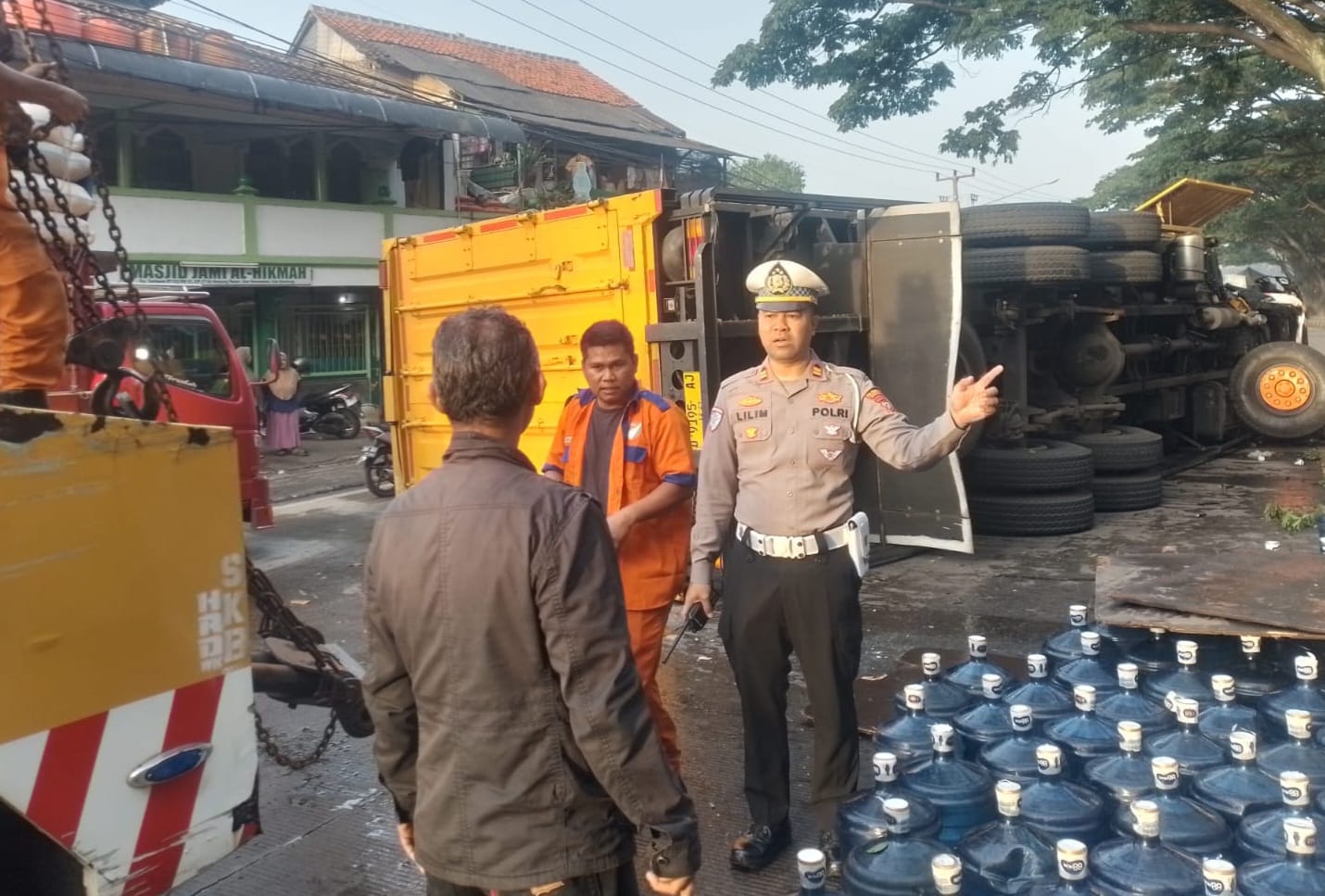 Menurut Lilim, kasus kecelakaan tunggal ini diduga sopir mobil wings box pengangkut galon air mineral Ron 88 ini mengantuk.