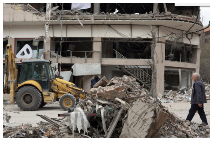 Puing-puing di gedung bisnis yang hancur setelah serangan udara di Teheran utara. (Foto: Abedin Taherkenareh/EPA)