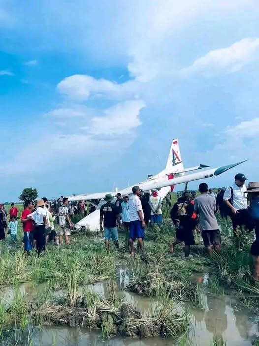 Pesawat Cessna milik BRO Skydive Indonesia itu terdampar ke area sawah. Pesawat sempat terbang rendah dan berputar-putar yang akhirnya terjatuh.