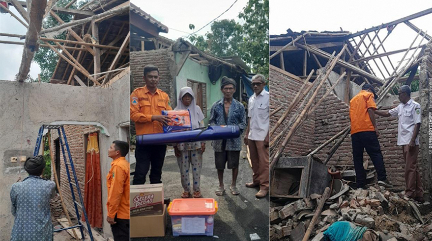 Atas bantuan Aparat, TNI, Polri, DPUTR Kuningan, Dinas Sosial, dan BPBD Kuningan, sudah melakukan pembersihan material tembok dan atap yang ambruk.