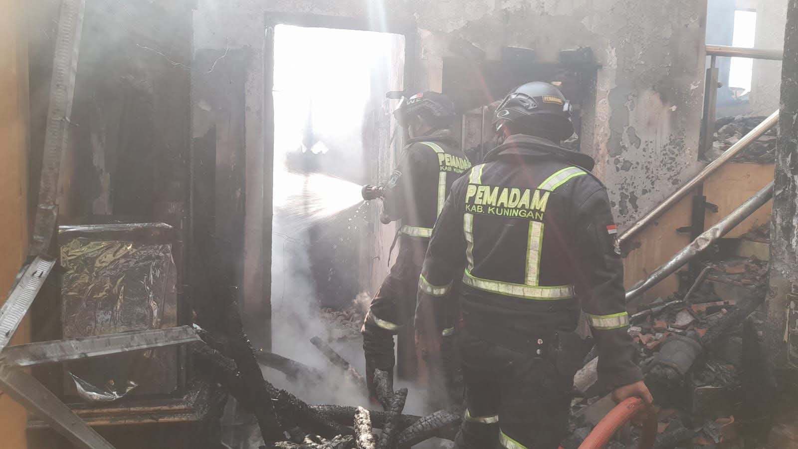 Kebakaran terjadi di rumah permanen berukuran 186 m² milik nenek Sari (68) di Dusun Puhun RT. 012 RW. 003 Desa Kalimanggis Wetan, Kabupaten Kuningan, Minggu 5 Oktober 2025.