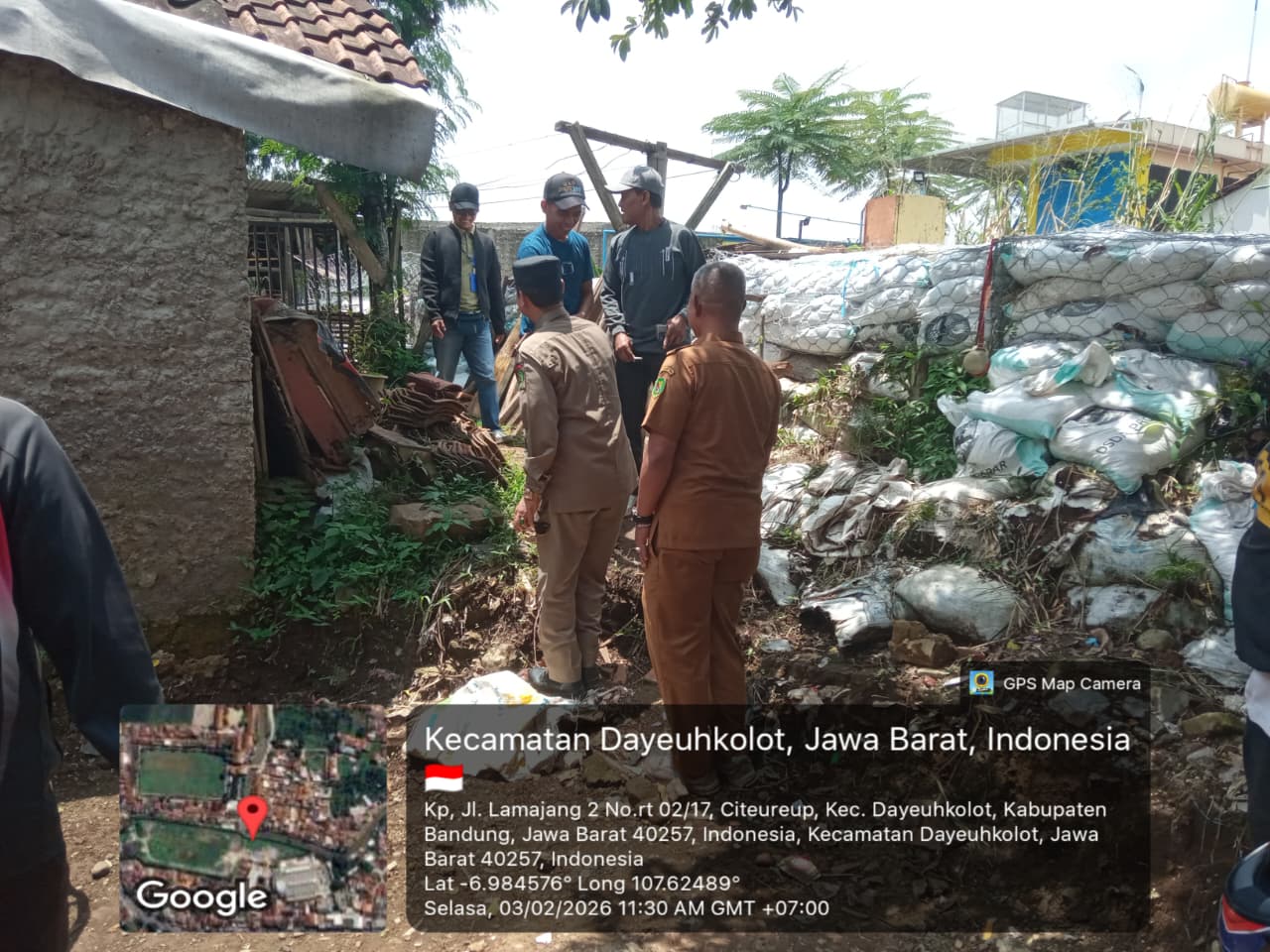 Tak hanya itu, tim Pentahelix juga melakukan survei rencana pemasangan Tembok Penahan Tanah (TPT) yang berlokasi di RW 17 Desa Citeureup sekaligus melakukan sosialisasi penertiban bangunan liar (bangli) di sekitar lolasi.