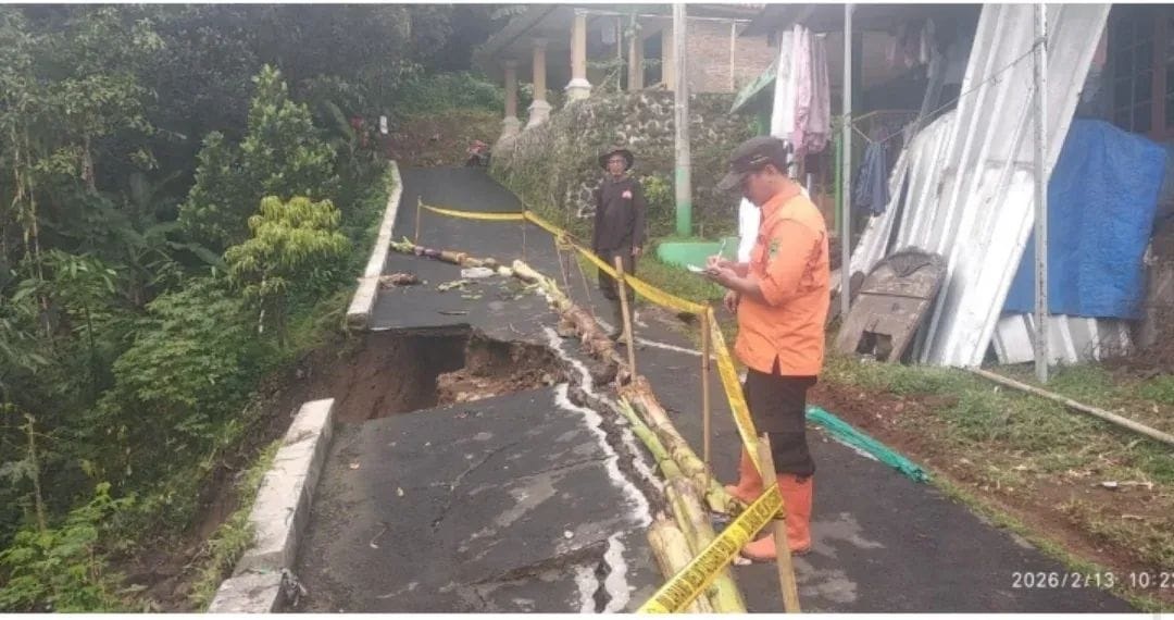TERASJABAR.ID – Akibat guyuran hujan yang terus menerus lebih dari dua jam, pada Jumat (26/2/2026) petang, gorong-gorong jembatan Cibungkan, di Dusun Pasir tengah, Desa Karangkamulyan Kec. Ciawigebang, Kab. Kuningan, amblas. Akibatnya, badan jalan tergerus air dan membuat akses jalan kabupaten antara Ciawigebang menuju Cihaur, terputus, selepas Maghrib.