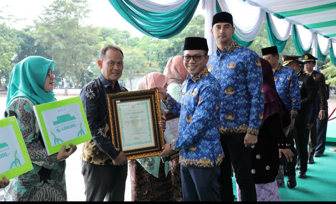 Penghargaan disampaikan langsung oleh Bupati Bandung Dadang Supriatna kepada Tri Rahmanto. Keduanya tampak bersalaman dan tersenyum lebar menghadap kamera awak media yang mengabadikan momen bersejarah tersebut.
