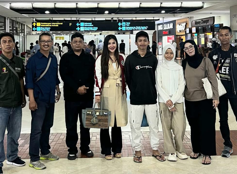 Rizki (keempat kanan) dijemput di Bandara Soeta oleh keluarga dan pihak yang memulangkan dari dari Kamboja