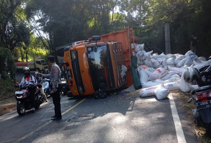 “Truk melaju dari arah Sumedang menuju Bandung. Ketika melintasi jalan yang menurun dan berbelok truk diduga mengalami rem blong hingga akhirnya sopir kehilangan kendali,” katanya.