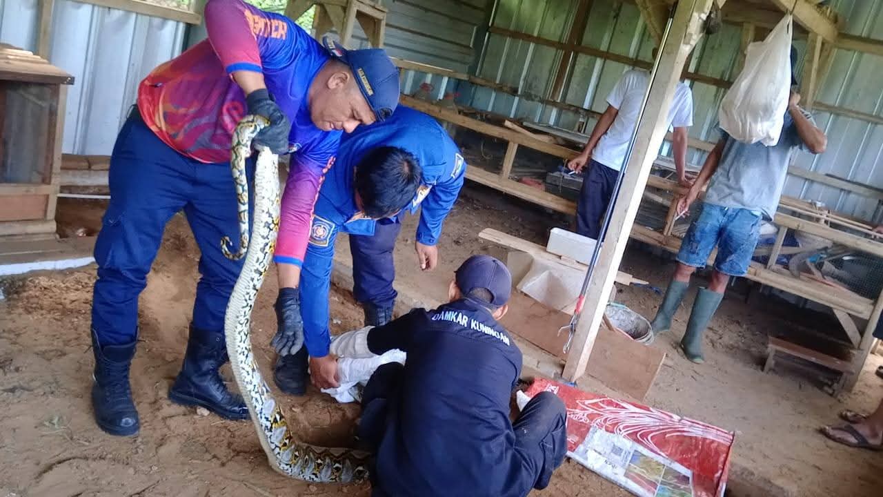 Penangkapan ular tersebut, kata Kepala UPT Damkar Andri Arga Kusumah, setelah ada laporan dari pemilik ternak ayam, bahwa di kandangnya ada seekor ular, yang telah memangsa sejumlah ayamnya.